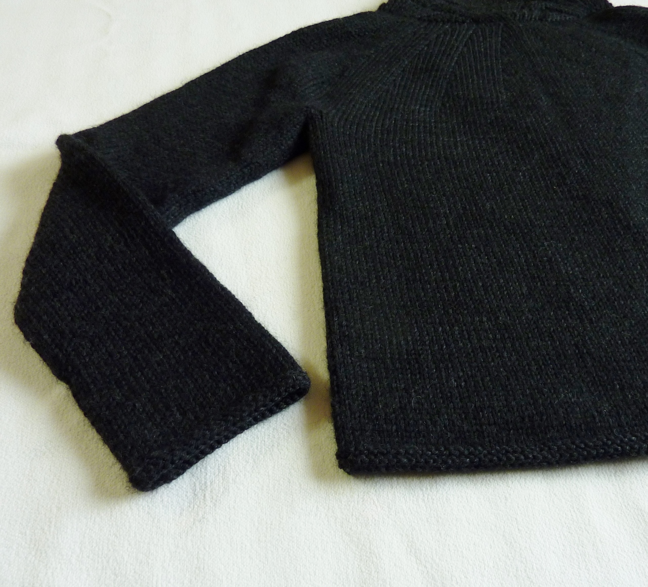 - 身頃と袖の編み終わりは、一目ゴム編みをやめてガーター編みにしました。